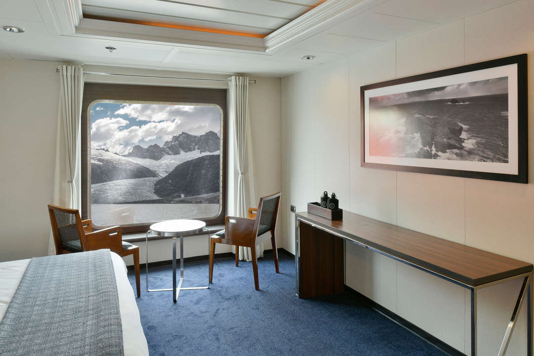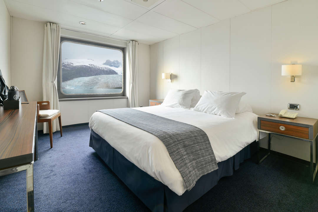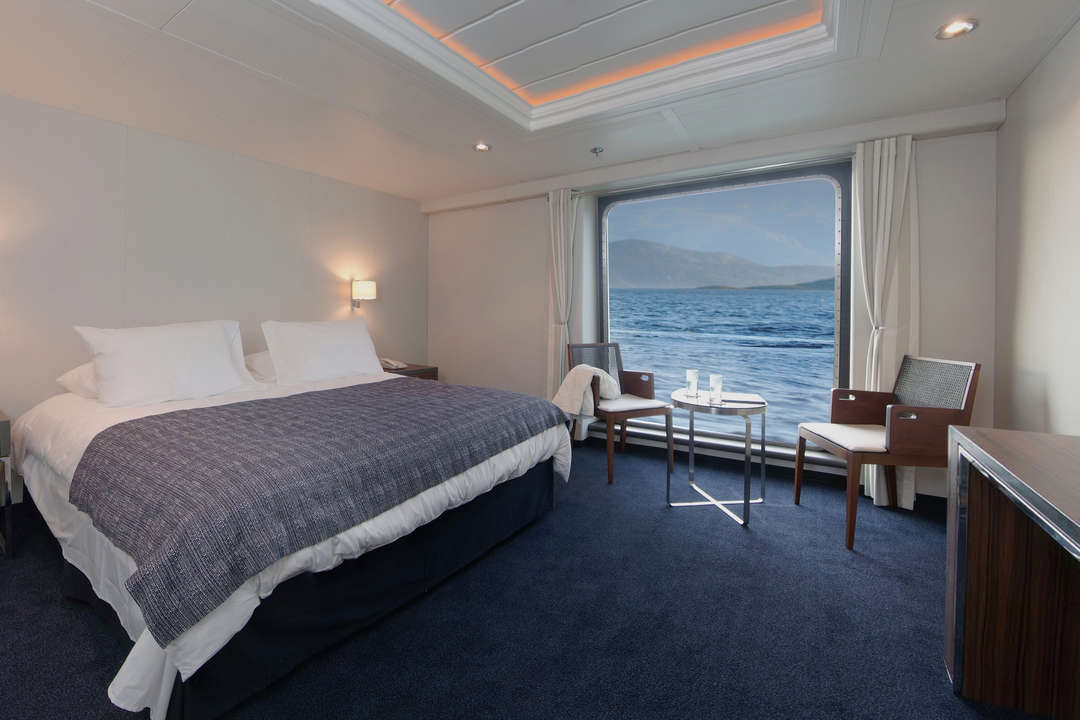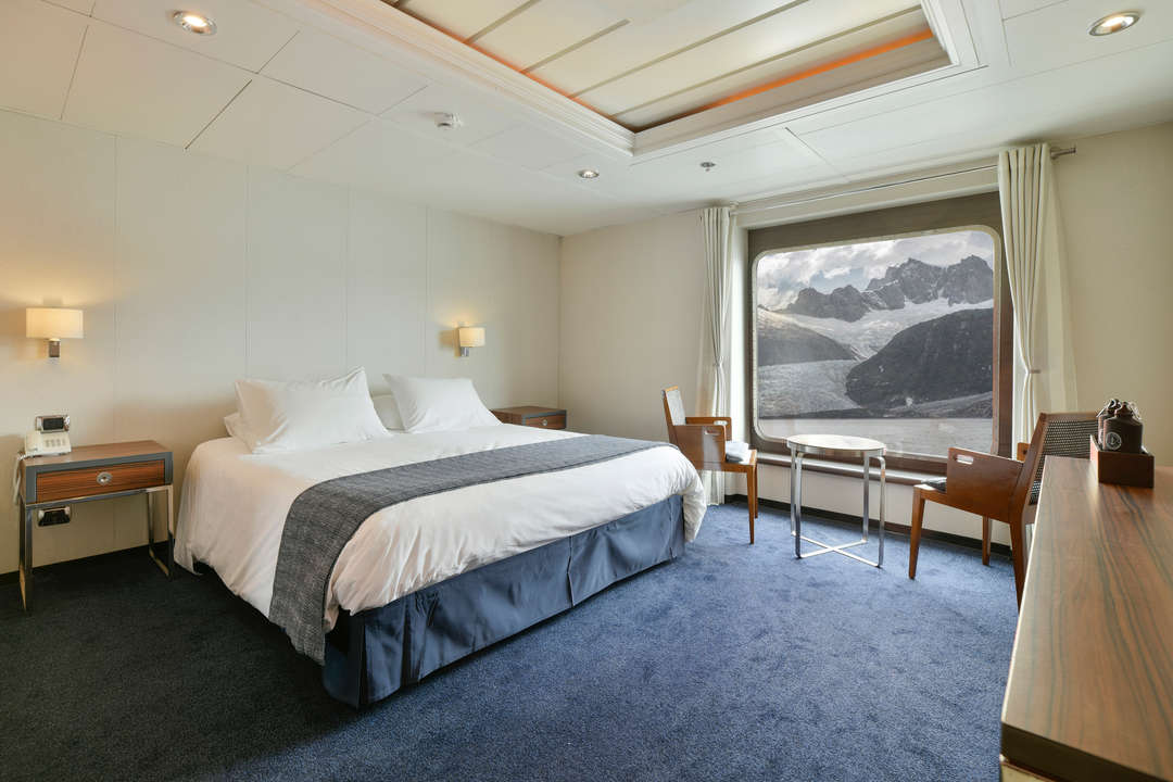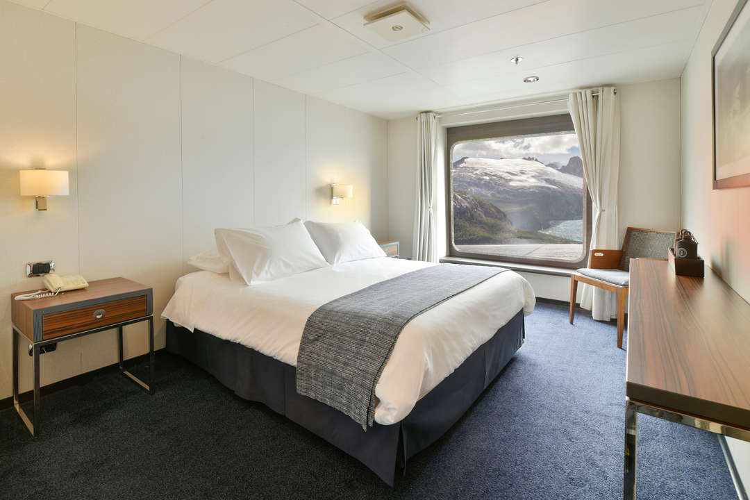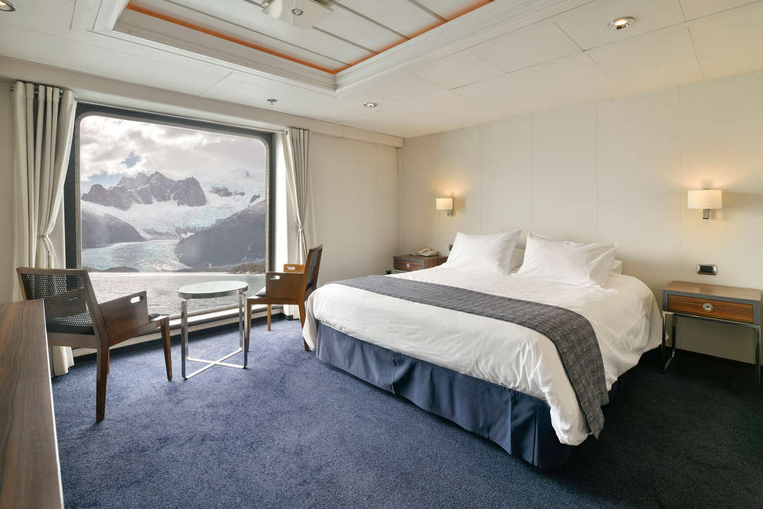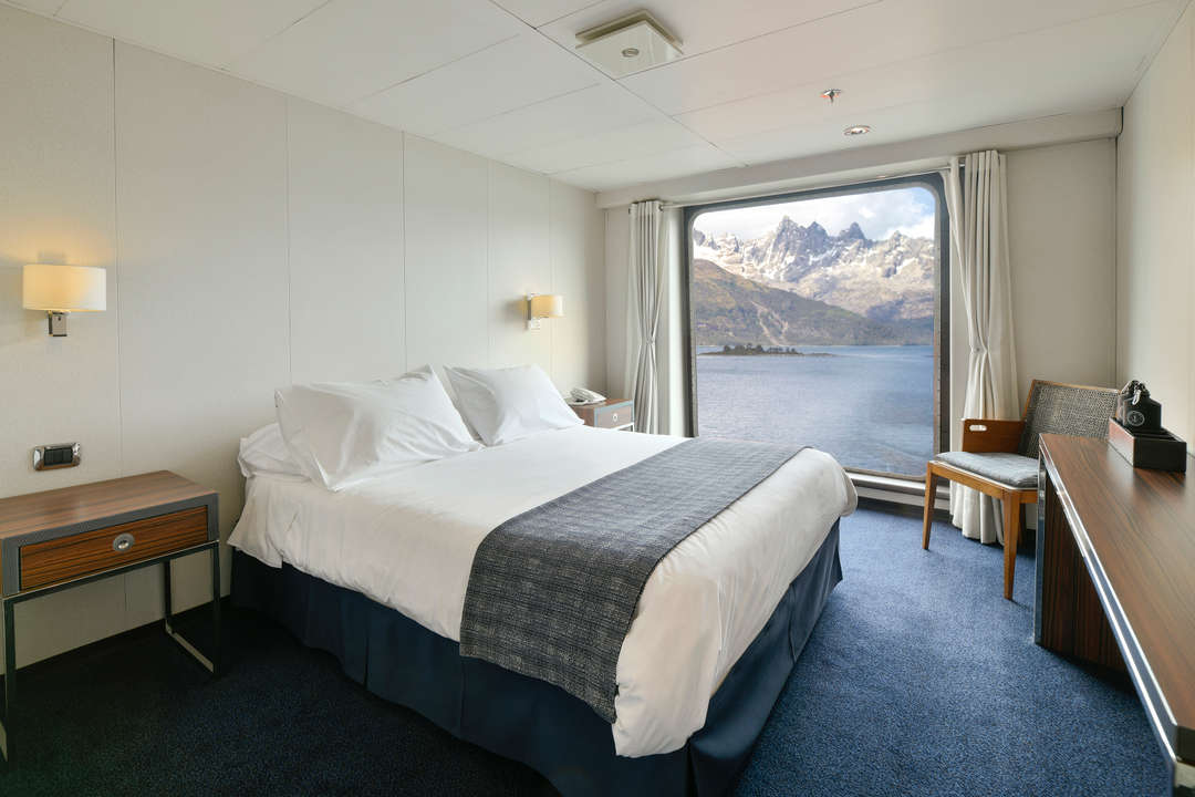 The Stella Australis offers an intimate expedition-style cruising experience with a maximum capacity of just 200 guests across 100 spacious cabins. Each cabin features exterior windows, allowing guests to enjoy Patagonia’s ever-changing scenery from the comfort of their room. Spread across five decks, the ship combines modern design with elegant décor, ample space, and an all-inclusive concept, ensuring a comfortable and immersive journey through one of the world’s most remote regions.