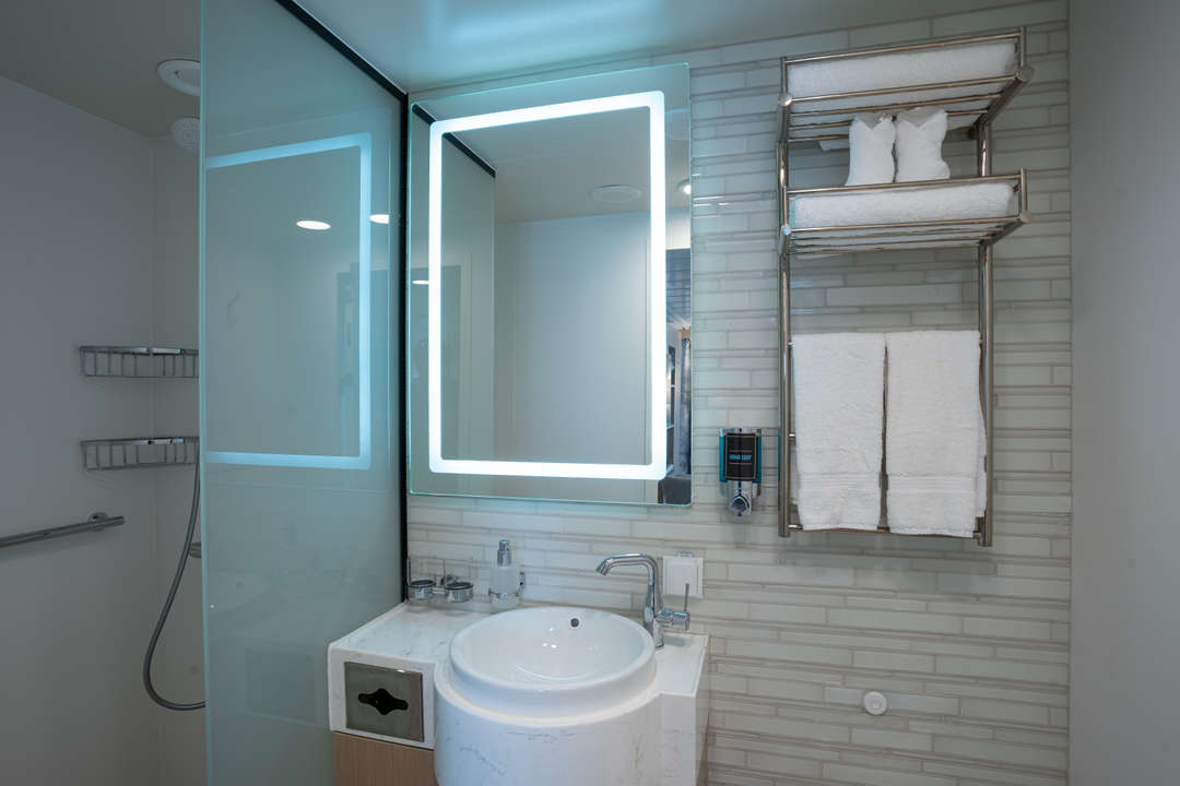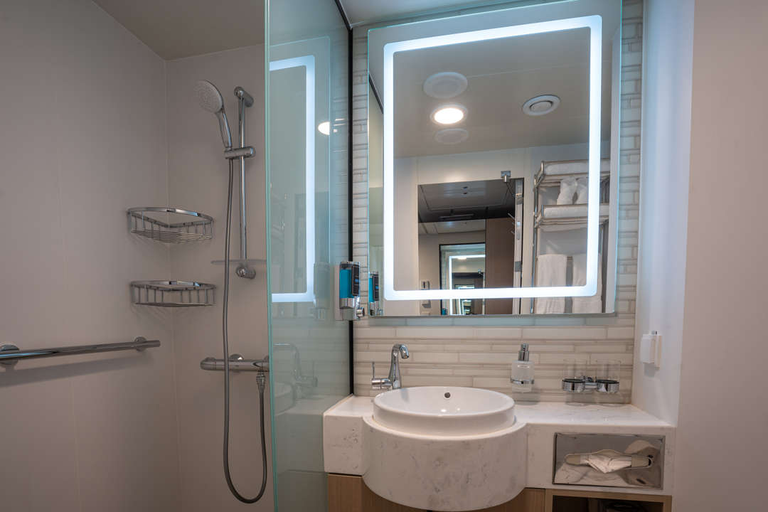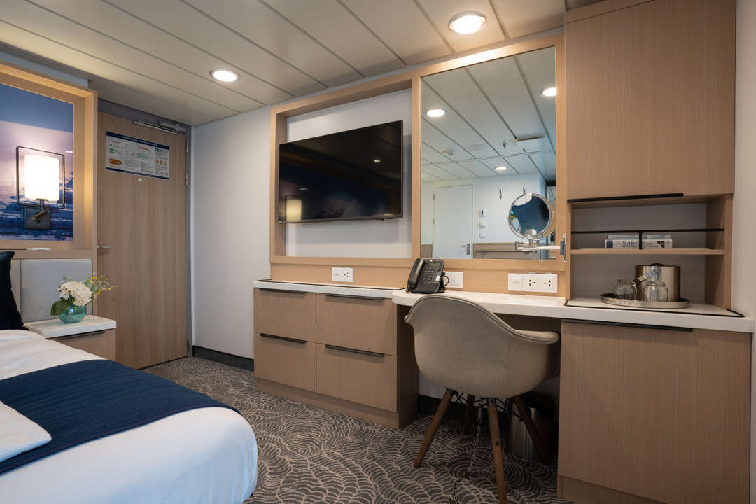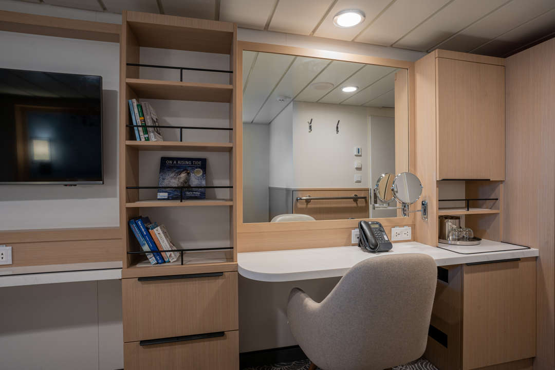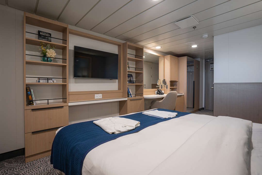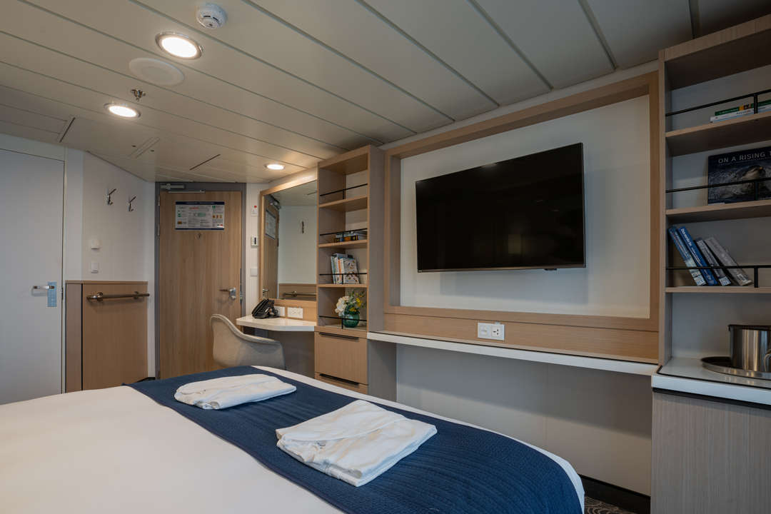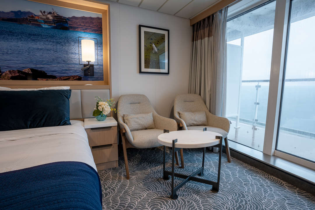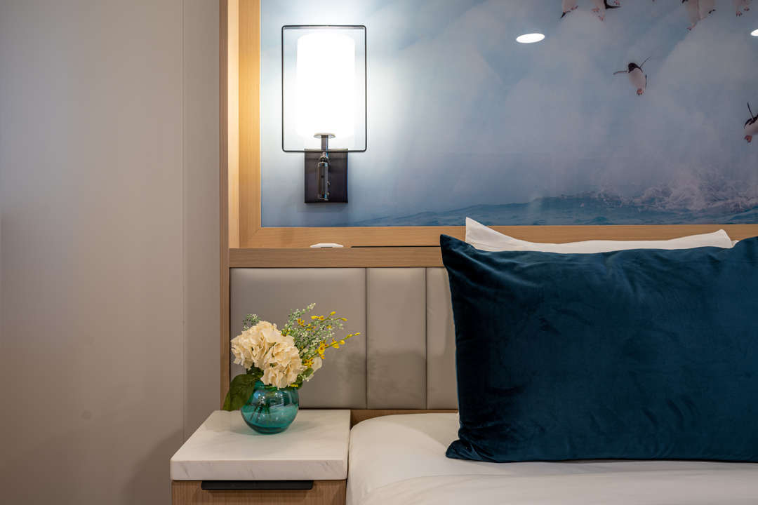 The Ocean Albatros is a 104-meter/341-foot-long cruise ship with luxury amenities, taking 169 guests on an adventure through the Arctic region. This luxurious ship features 94 comfortable staterooms and suites with unobstructed sea views. Most rooms have a private balcony, making it the perfect spot to watch the Northern Lights or enjoy the midnight sun. There are two restaurants, a wellness area, an Albatros Nordic Bar, an open deck dining facility, a modern lecture lounge, and many other state-of-the-art amenities. The Ocean Albatros is also 50% more environmentally friendly than traditional expedition vessels,
