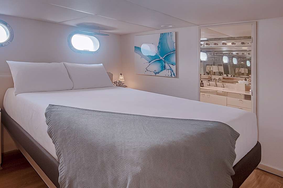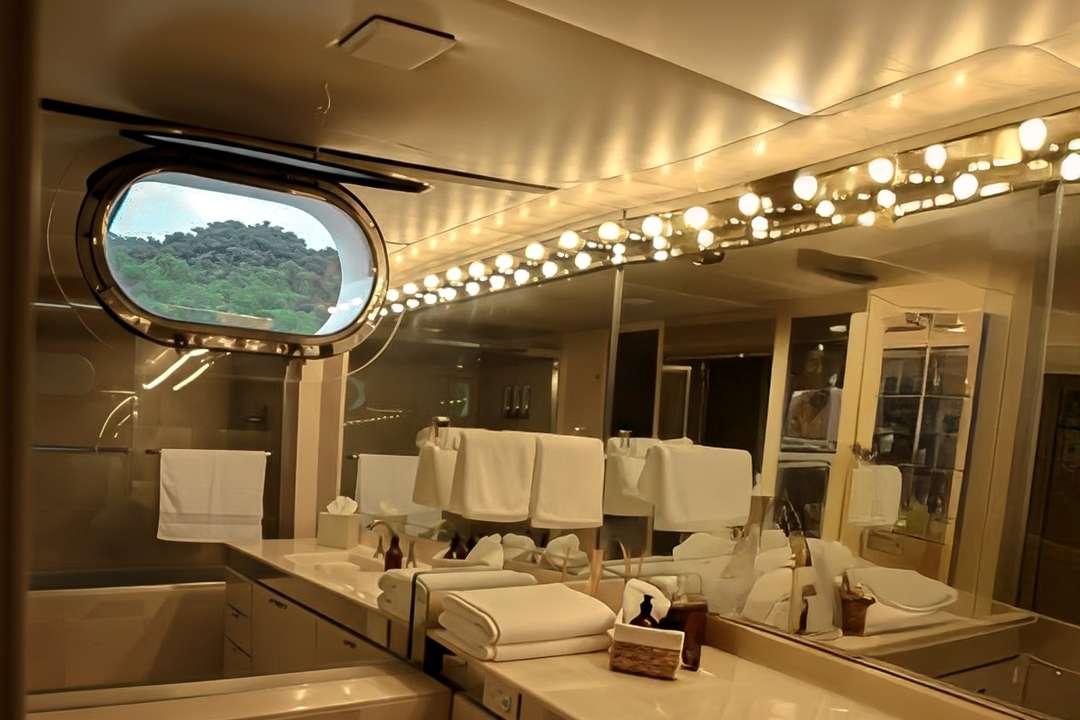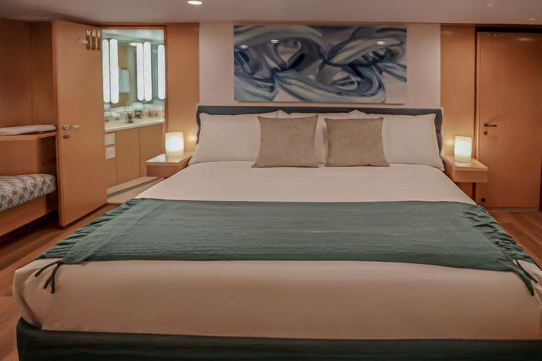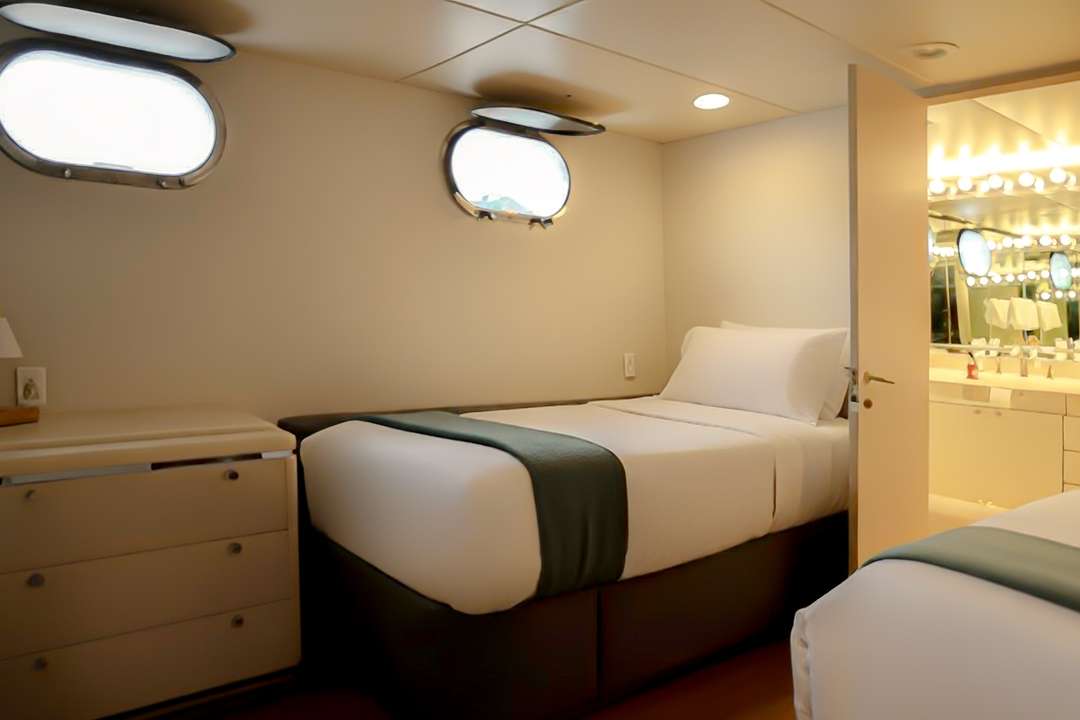 Galaxy Zibó accommodates just 10 guests across 5 cabins, offering an intimate and upscale cruising experience along Costa Rica’s Pacific coast. The yacht features 1 Master Suite, 2 Matrimonial Cabins with king beds and ocean views, and 2 Twin Cabins designed with warm lighting, private wardrobes, and sea-facing portholes. All cabins include en suite bathrooms with rain showers and refined wood finishes.