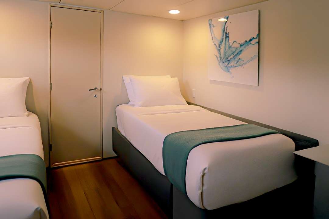 Included: VAT, Chamber Fees, Environment Tax, Fuel Surcharge, Mandatory Service Charge, National Park Fees, Port Fees, Airport Transfer, Hotel Transfer, Local Flights, Drinking Water, Soft drinks, Tea & Coffee, Welcome Cocktails, Full-Board Meal Plan (All meals), Snacks, Jet Ski, Kayaks, Land Excursions, Naturalist Guide, Snorkel Gear, Snorkeling Guide, Stand Up Paddleboard, Beach Towels, Cabin Towels, Complimentary Toiletries, Laundry / Pressing Services, WiFi internet.