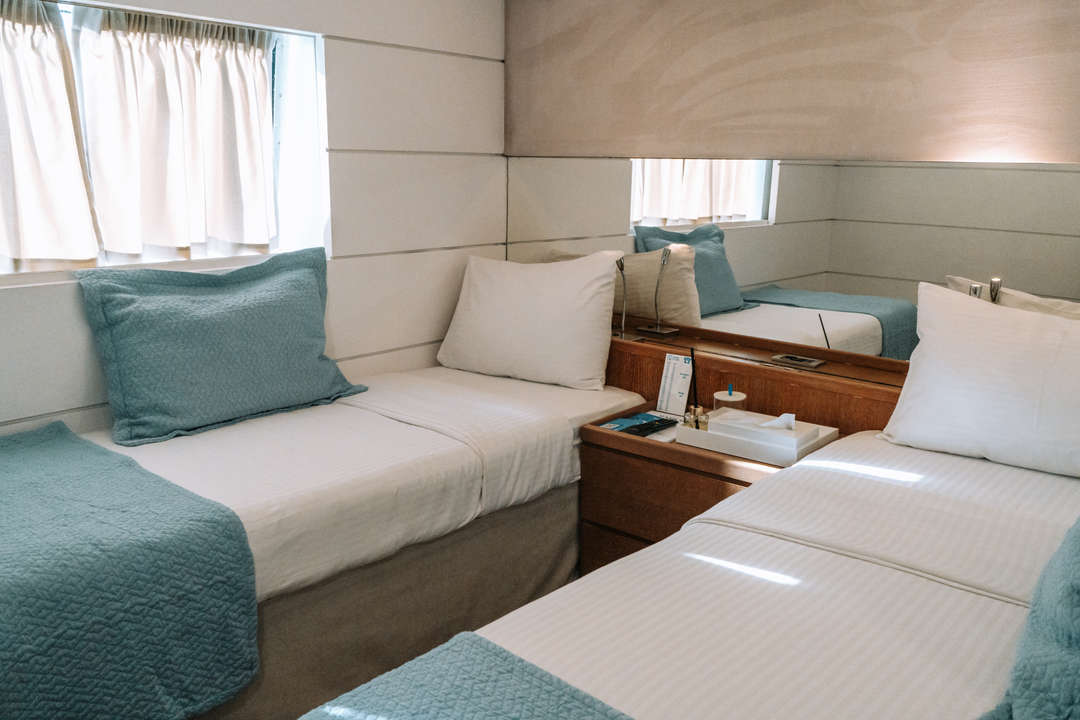 The Harmony G mega-yacht offers luxury accommodations and incredible itineraries exploring the stunning Greek Islands. At 53m in length, there is ample space for rest, relaxation, and socializing with fellow like-minded passengers. 21 cabins are spread over 3 decks with a choice of cabin category to suit guests' needs. All cabins have an ensuite bathroom with shower, individually controlled A/C, flat-screen TV with satellite channels, entertainment system, internal use telephone, safety deposit box, mini-fridge, and a hairdryer.
