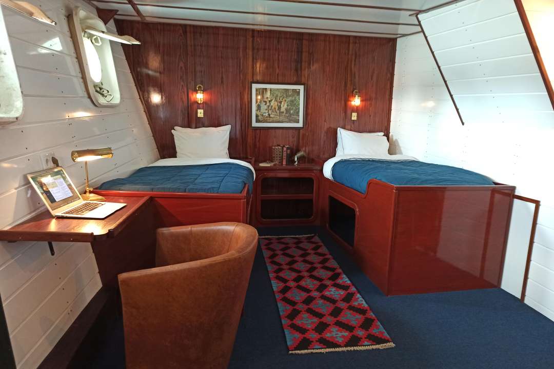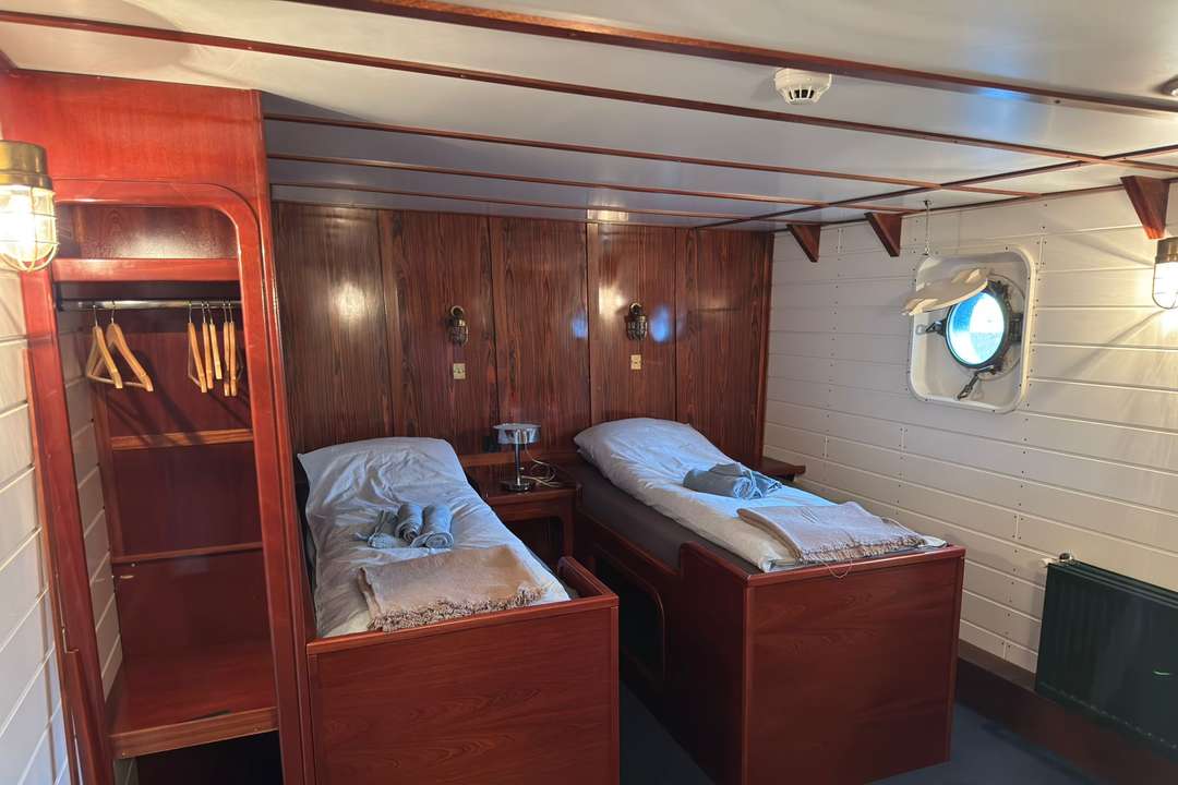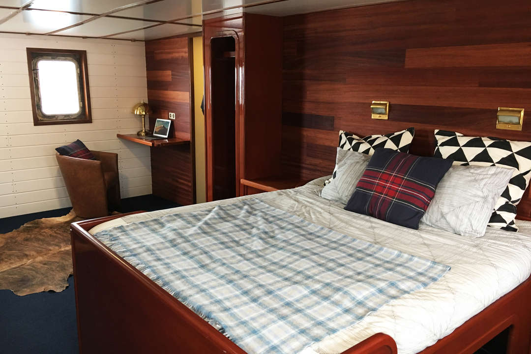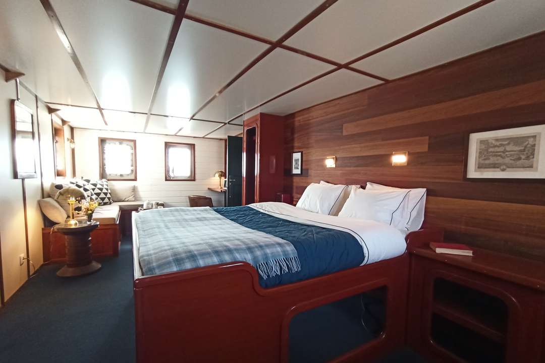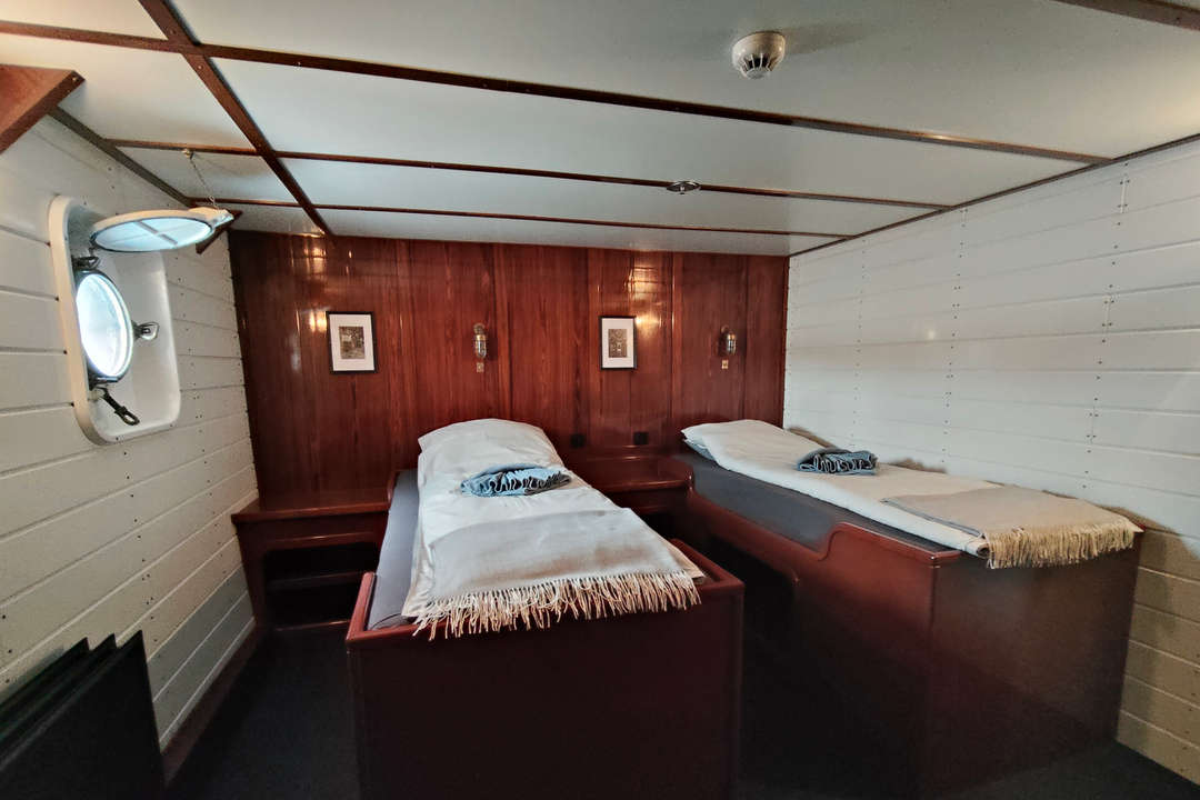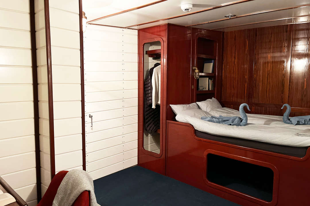 Die Balto ist ein Arktis-Expeditionsschiff für nur 12 Gäste in 7 Kabinen mit eigenem Bad und zählt damit zu den kleinsten und exklusivsten Schiffen, die Grönland erkunden. Zu den Kabinenkategorien gehören eine Owner’s Cabin, eine Superior-Kabine sowie Doppel-, Zweibett- und Einzelkabinen – alle neu renoviert und mit privaten Einrichtungen sowie Stauraum ausgestattet. Warme Mahagoni-Interieurs, Messingdetails und klassische Holzdecks schaffen eine stilvolle und zugleich gemütliche Atmosphäre, die maritimen Vintage-Charme mit modernem Expeditionskomfort verbindet.