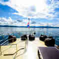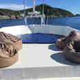 M/V Andaman liveaboard is a 26mtr/85ft long steel-hulled vessel operating in beautiful Thailand. It has 6 cabins, all with air conditioning, and can accommodate up to 20 guests. Four of the cabins are double with two featuring their own ensuite bathrooms. The other two doubles and two dorm-style cabins use shared bathroom facilities. All cabins are located on the lower deck but feature sea-view windows in each one. The dive deck, where divers store gear and get ready for dives, is also located at the stern of the lower deck. On the middle deck is a spacious dining & meeting area, perfect for meals, dive briefings, and playing games. The upper deck has an open-air sun deck with mattresses and bean bags, perfect for relaxing in the sunshine. For those who prefer some shade, there is a shaded canopy with table and seating areas beneath.