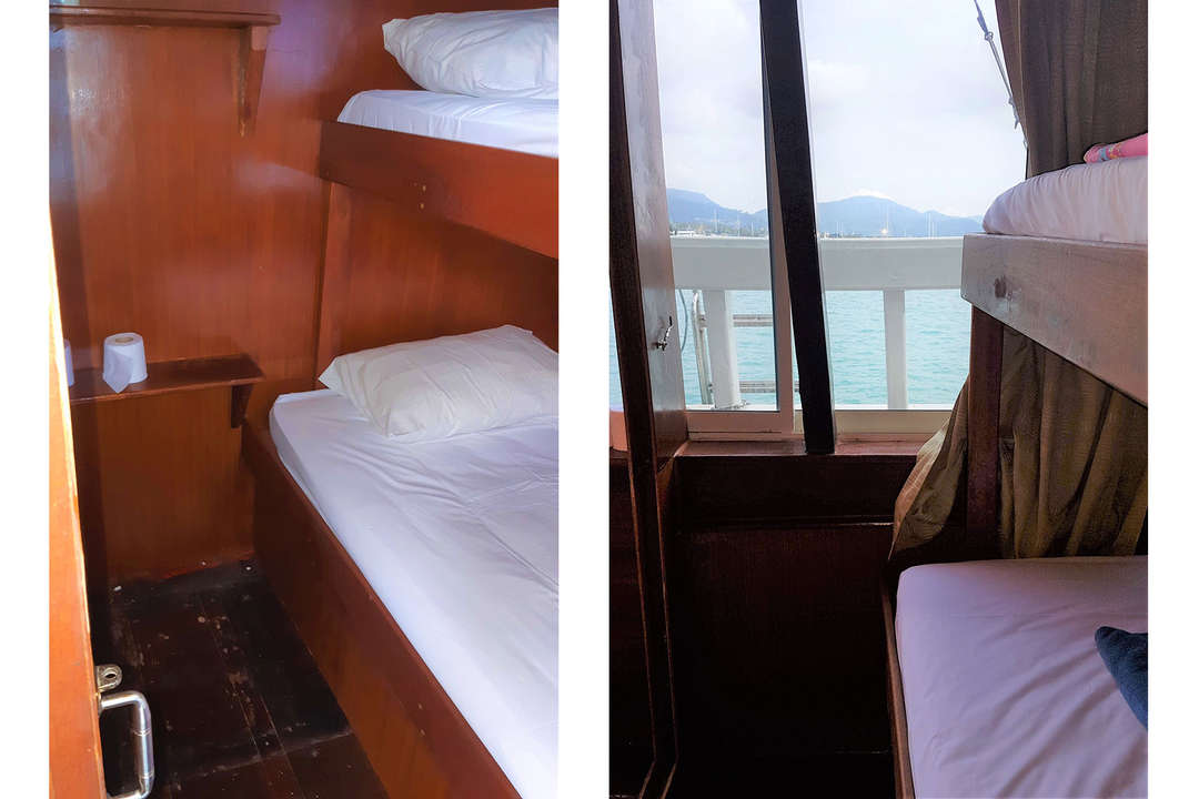 Merdeka 1 tiene capacidad para 8 huéspedes y dispone de 4 cabinas con baño privado, toallas y ventilador. En la cubierta podrás relajarte bajo el sol de la tarde o recibir un masaje tradicional. Las comidas con sabores tailandeses siempre están recién preparadas y se sirven al estilo familiar en el comedor.