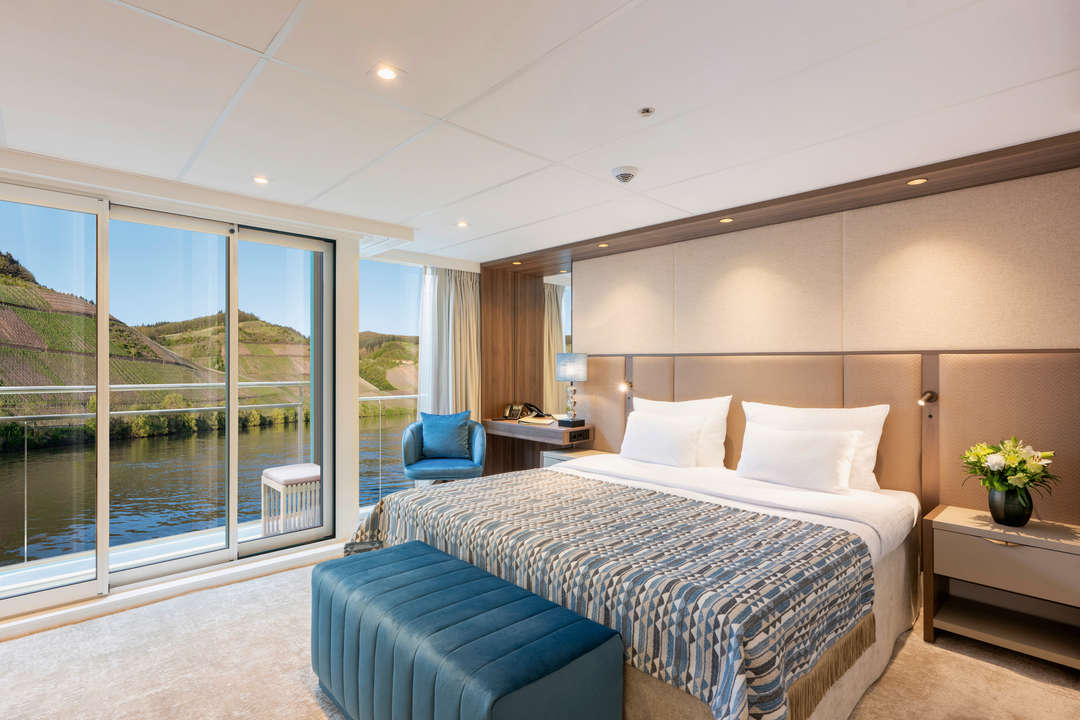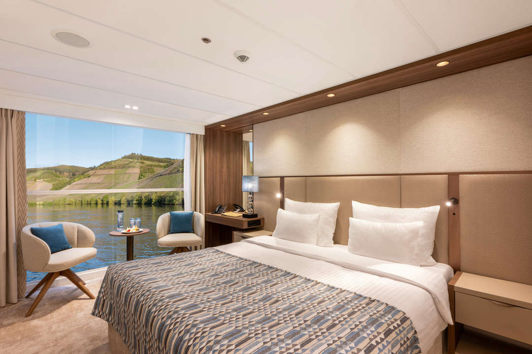 The Amadeus Amara is a river cruise ship designed to host up to 164 guests. On board are 70 stylish staterooms and 12 spacious suites, many of which feature panoramic windows or private walk-out balconies for uninterrupted river views. Each cabin is equipped with premium amenities, including the Amadeus Signature Bed, en suite bathrooms with Rituals® bath products, a TV, a minibar, climate control, and ample storage space. The suites offer additional luxury with lounge areas, walk-in wardrobes, and espresso machines.