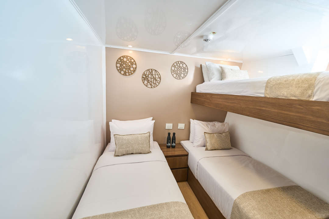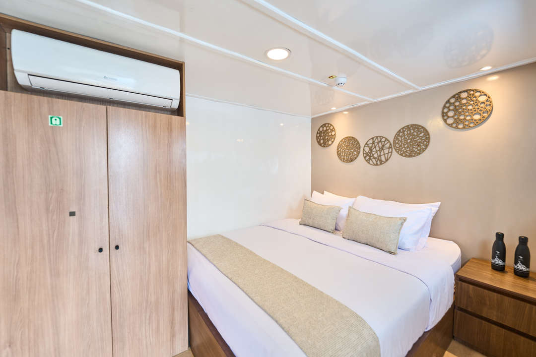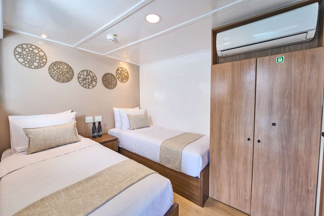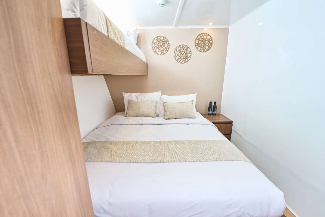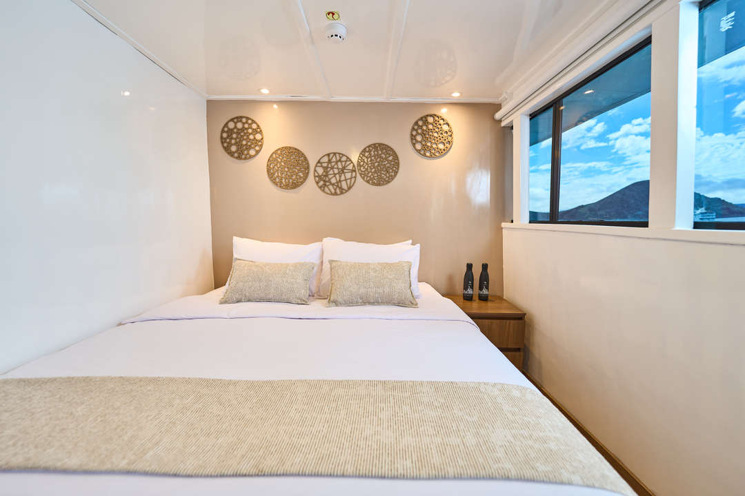 モンセラートは全長28メートル/91フィートの船で、10キャビン(ダブル8室、ダブル/トリプル2室)に計16名の乗客を乗せてガラパゴス諸島での冒険クルーズを提供します。すべてのキャビンにはエアコンが完備され、セーフティーボックス、ヘアドライヤー、ワードローブ、専用バスルームが付いています。モンセラートの乗客対ガイドの比率は8対1で、これは諸島内でも最高クラスであり、最大乗客数で運航している場合でも、エクスカーション中の詳細な説明が保証されます。さらに、モンセラートでは、知識豊富なナチュラリストガイドによる陸地ハイキングや、エキサイティングなシュノーケリングや水泳体験も提供されています。さらに、スタンドアップパドルボードやカヤックは無料でご利用いただけます。また、追加料金なしで料理の実演やカクテルもお楽しみいただけます。