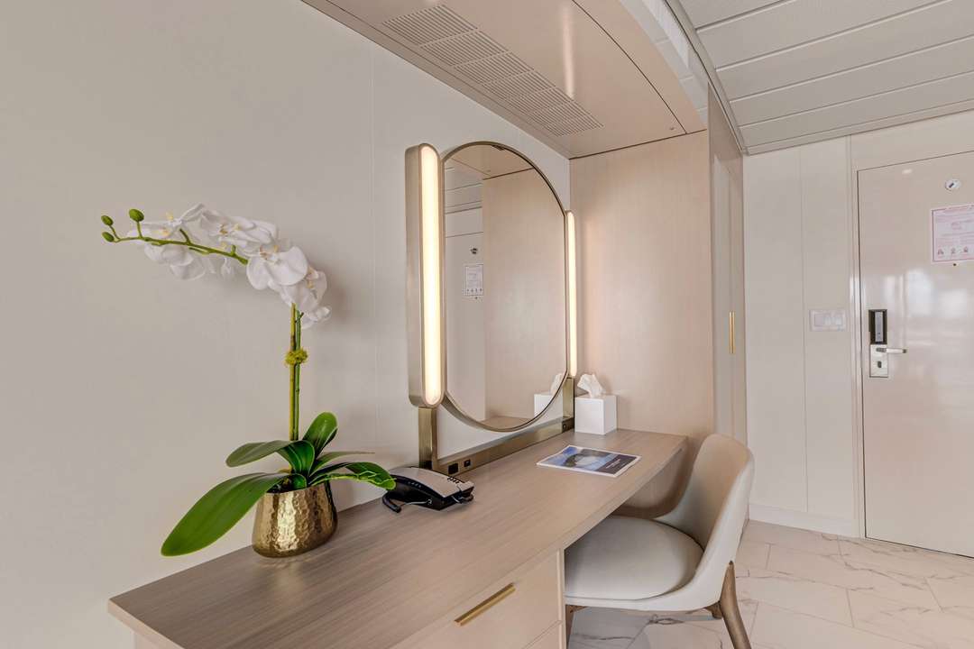 Guests can dine at multiple dining venues, including an outdoor café. Several lounges provide ideal spots to unwind, while the bow observation area and expansive sun deck—with its walking track—offer panoramic coastal views. Additional facilities include a fitness center, an activity and tender platform for excursions, and elevator access to every deck for added convenience.