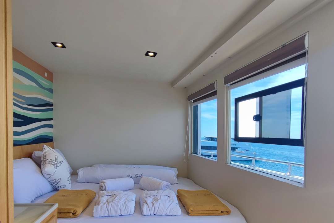 The Alia Soul is a 36-meter (118-feet) liveaboard designed for unforgettable Red Sea diving adventures. Accommodating up to 20 guests, the vessel features 10 cabins, including 6 double cabins on the lower deck, 2 double cabins on the upper deck, and 2 upper-deck cabins with queen-size beds. Guests benefit from daily housekeeping and amenities that help ensure a comfortable, relaxing stay throughout their journey.