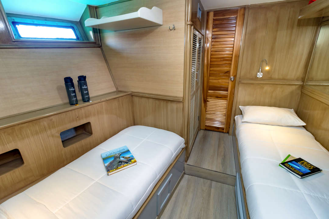 Letty는 길이 25미터/83피트의 소형 크루즈 선박으로, 갈라파고스를 통해 모험 크루즈를 즐기는 16명의 게스트를 수용하는 8개의 캐빈을 갖추고 있습니다. 하단 갑판에는 트윈 침대 캐빈 4개가 있으며, 상단 갑판에는 파노라마 창이 있는 캐빈 4개가 있습니다. 모든 캐빈에는 전용 욕실과 에어컨이 구비되어 있습니다.