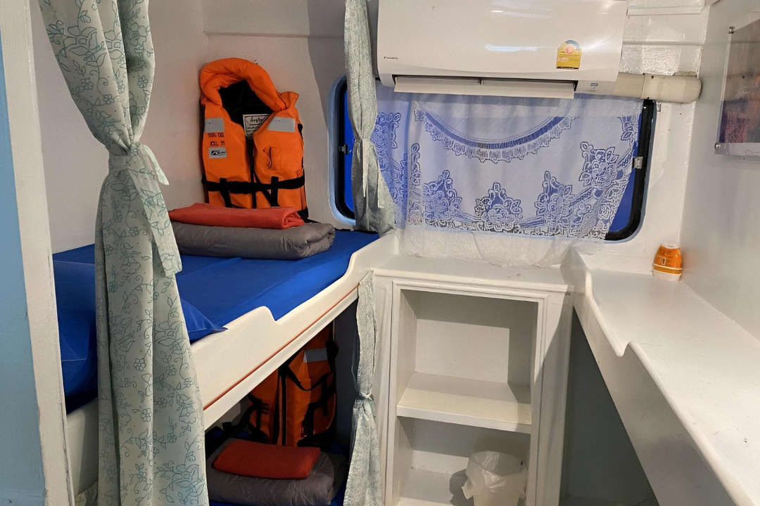 돌핀 퀸 리브어보드는 3층으로 이루어져 있으며, 탑승객 18명을 위한 충분한 공간을 제공합니다. 메인 데크에는 더블 캐빈 2개, 트윈 캐빈 3개, 쿼드 캐빈 1개가 마련되어 있습니다. 각 캐빈에는 에어컨 및 안전과 편의를 위한 개방 가능한 바다 전망 창문이 설치되어 있으며, 쿼드 캐빈에는 프라이버시를 위해 각 침대 주위로 커튼이 설치되어 있습니다. 상층 데크에는 바다 전망과 개별 조절 가능한 에어컨을 갖춘 더블 캐빈 2개가 자리 잡고 있습니다. 선상 음식은 매 끼니 신선하게 준비된 태국 및 서양 요리의 조합으로 제공됩니다. 아침 식사는 주문에 맞춰 준비되며, 식단 요구 사항은 사전 요청 시 맞춤 제공이 가능합니다. 선 데크에는 휴식을 위한 공간이 충분히 마련되어 있으며, 해먹 및 선베드도 준비되어 있어 다음 다이빙 장소로 이동 중에 돌고래나 고래상어를 관찰하거나 전통 태국 마사지를 즐길 수 있는 완벽한 장소입니다.