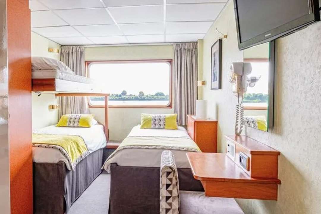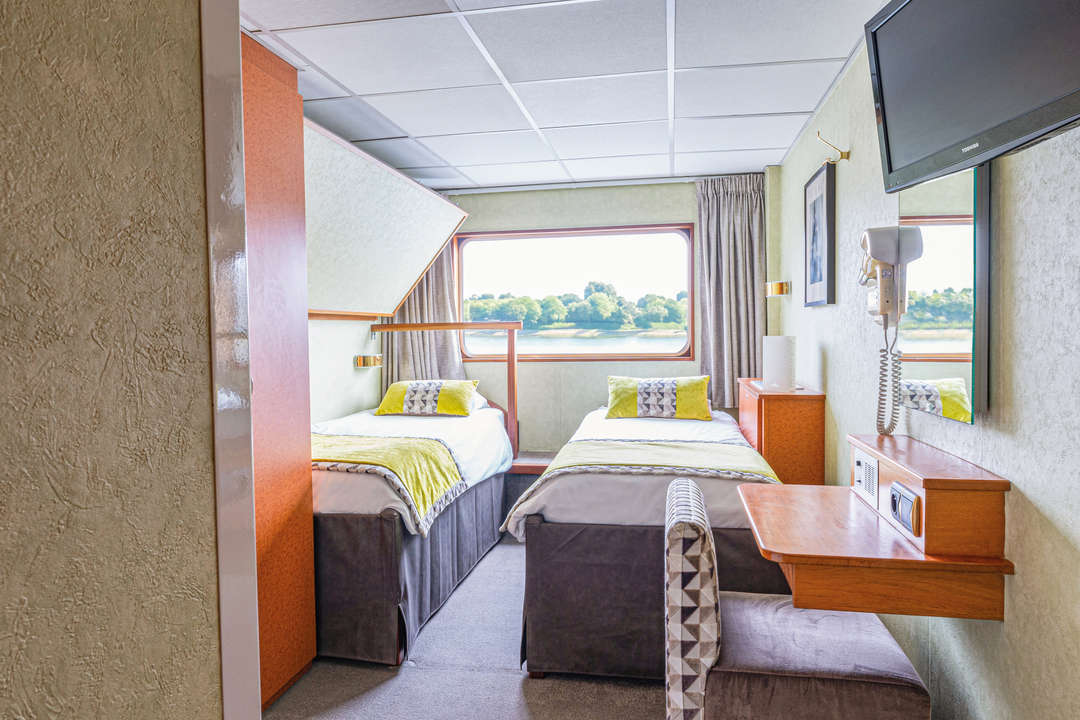 MS 프랑스는 78개의 스타일리시한 복고풍 캐빈을 갖추고 있으며, 최대 159명의 승객을 수용할 수 있습니다. 각 캐빈은 1960년대 파리의 매력을 반영한 디자인으로 꾸며져 있습니다. 2개의 데크에 걸쳐 배치된 각 캐빈에는 대형 창문, 샤워 시설이 있는 전용 욕실, 개별 에어컨, 금고, TV가 갖춰져 있습니다. 더블, 트리플, 싱글 캐빈과 함께 스위트룸도 선택할 수 있습니다. 길이 110미터의 이 선박은 빈티지 감성과 현대적 편안함을 결합하여 유럽 강을 따라 독특한 크루즈 경험을 제공합니다.