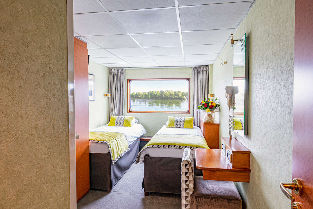 프렌치 발코니가 설치된 편안한 객실로, 침대는 더블로 배치하거나 두 개의 트윈 침대로 분리할 수 있습니다. 전용 욕실에는 샤워 시설과 목욕용품이 갖추어져 있으며, 위성 TV, 금고, 헤어드라이어, 라디오가 마련되어 있습니다. 상부 갑판에 위치하고 있으며, 높이 미는 창을 통해 주변 경관의 파노라마 전망을 감상할 수 있습니다.