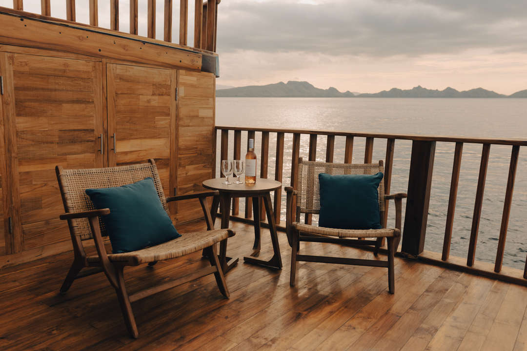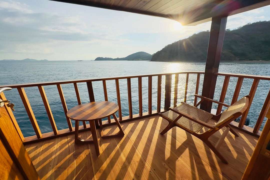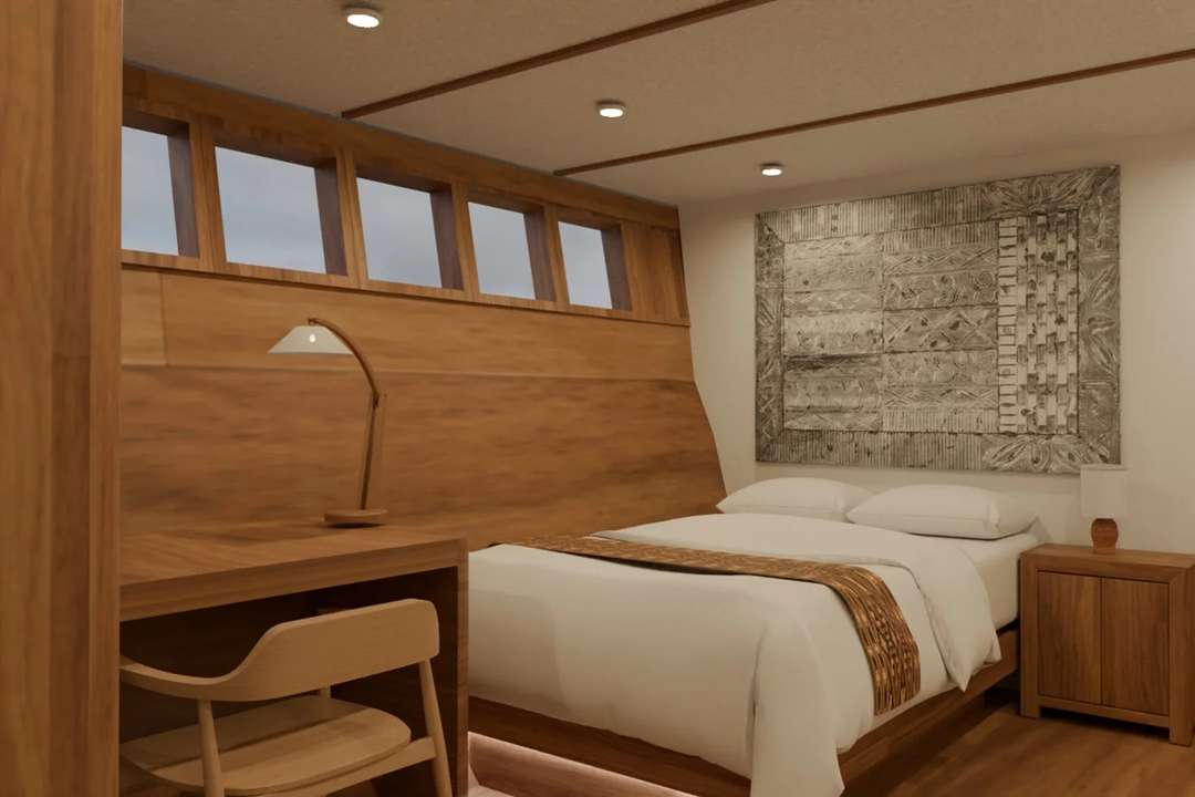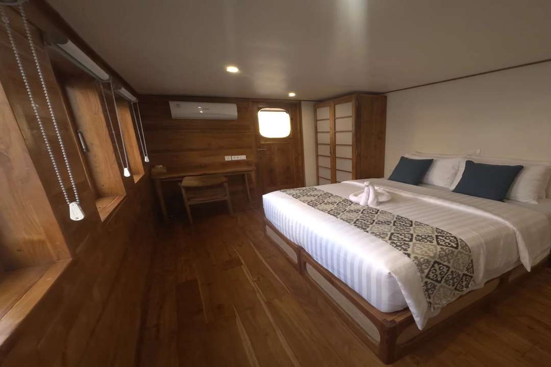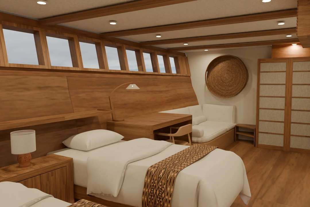 Naast de hutten kunnen gasten ontspannen in de stijlvolle eet- en woonkamer, cocktails drinken in de buitenlounge en bar, of genieten van het weidse uitzicht op de oceaan vanaf het zonnedek. Er is een speciale cameraruimte voor onderwaterfotografen, terwijl er de hele dag door een verscheidenheid aan heerlijke gerechten met Indonesische en internationale smaken wordt geserveerd. Gastronomische maaltijden, handgemaakte cocktails en diners onder de sterrenhemel zorgen voor een levendige en gezellige sfeer aan boord.