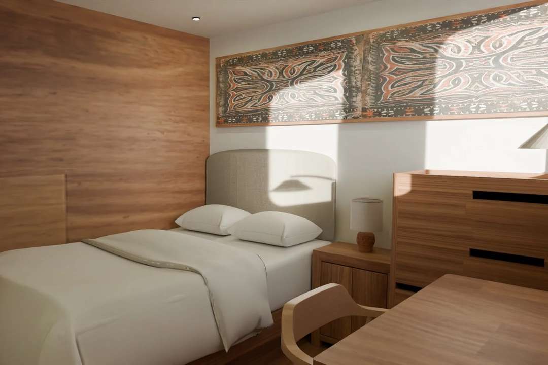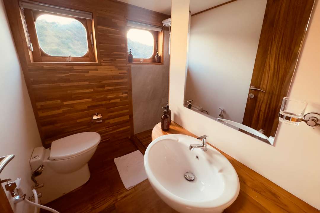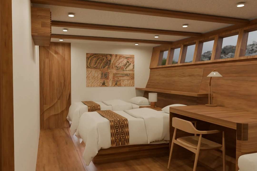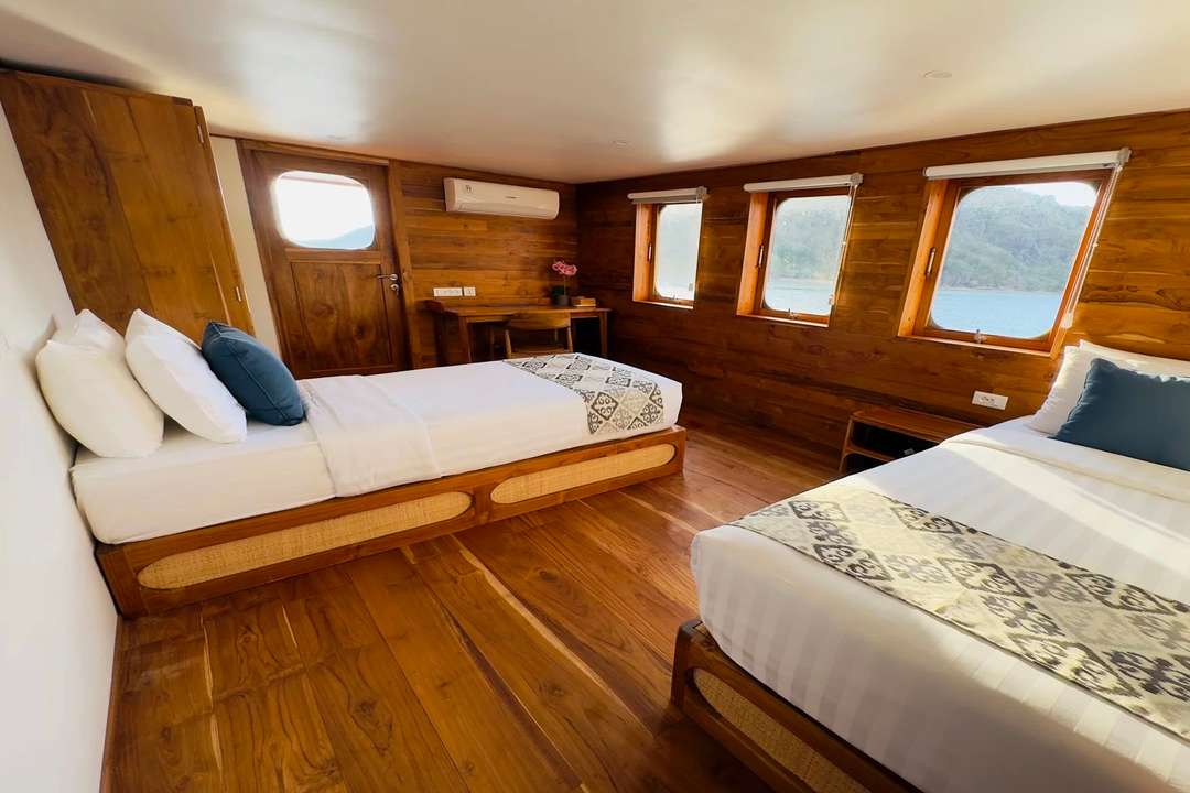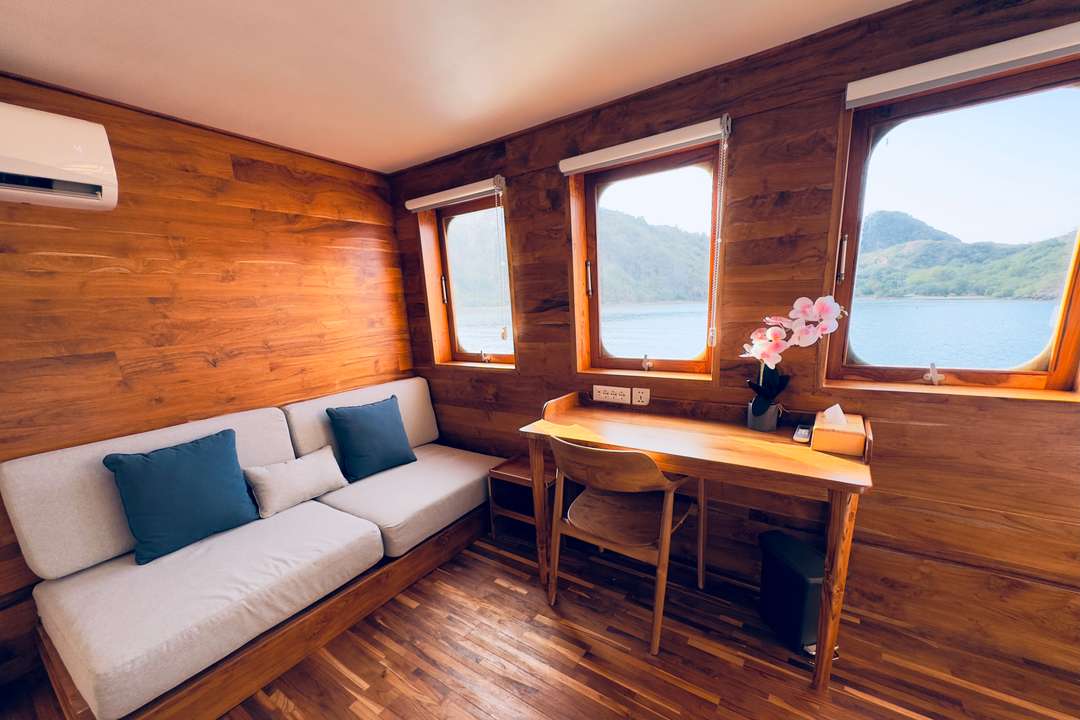 Naast de hutten kunnen gasten ontspannen in de stijlvolle eet- en woonkamer, cocktails drinken in de buitenlounge en bar, of genieten van het weidse uitzicht op de oceaan vanaf het zonnedek. Er is een speciale cameraruimte voor onderwaterfotografen, terwijl er de hele dag door een verscheidenheid aan heerlijke gerechten met Indonesische en internationale smaken wordt geserveerd. Gastronomische maaltijden, handgemaakte cocktails en diners onder de sterrenhemel zorgen voor een levendige en gezellige sfeer aan boord.