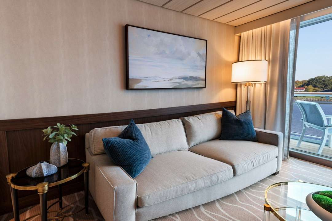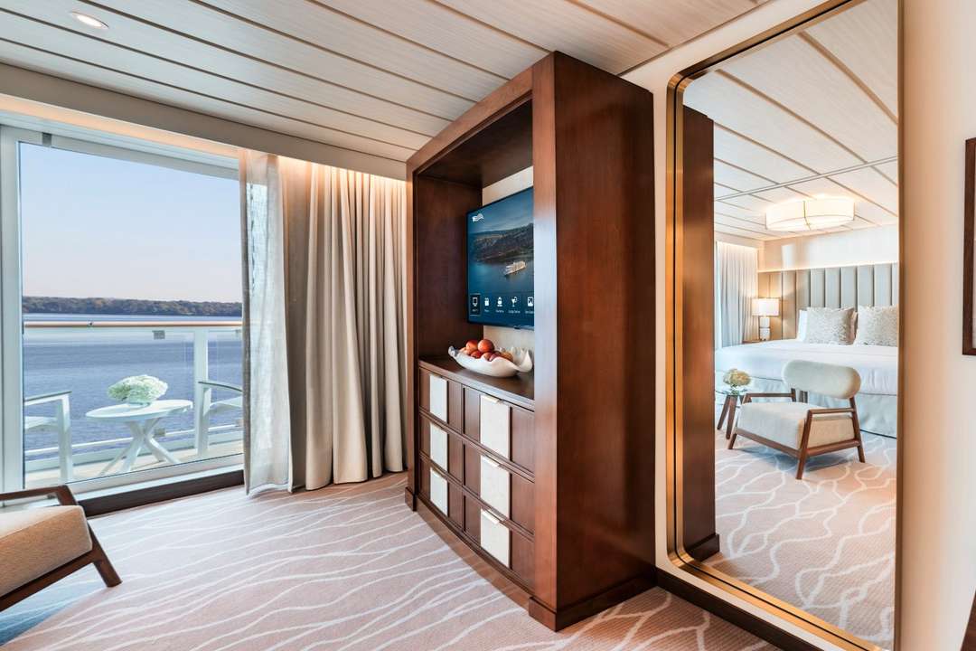 As Grand Suites são as melhores acomodações a bordo de qualquer pequeno navio de cruzeiro. 57,6 m² de espaço englobam uma sala de estar, quarto, mesa de jantar e bar de café da manhã, varanda e um espaçoso banheiro principal. Portas de correr do chão ao teto, tanto no quarto quanto na sala de estar, levam a uma varanda privativa de 7,6 metros de comprimento com uma mesa, cadeiras e uma chaise longue. A sala de estar possui uma TV, e a área de jantar tem uma máquina de café e um frigorífico que é reabastecido diariamente. O quarto possui uma TV adicional e uma cama king-size com roupa de cama premium. O banheiro possui uma pia dupla com um grande chuveiro e está equipado com amenidades de banho, secador de cabelo, toalhas de luxo e robes. O espaço de armazenamento em cada Grand Suite inclui um guarda-roupa, cômoda em tamanho real, armário sob o balcão e gavetas de mesa. Cada suíte também possui controle climático individual, cofre, portas USB para carregamento e WiFi de cortesia.