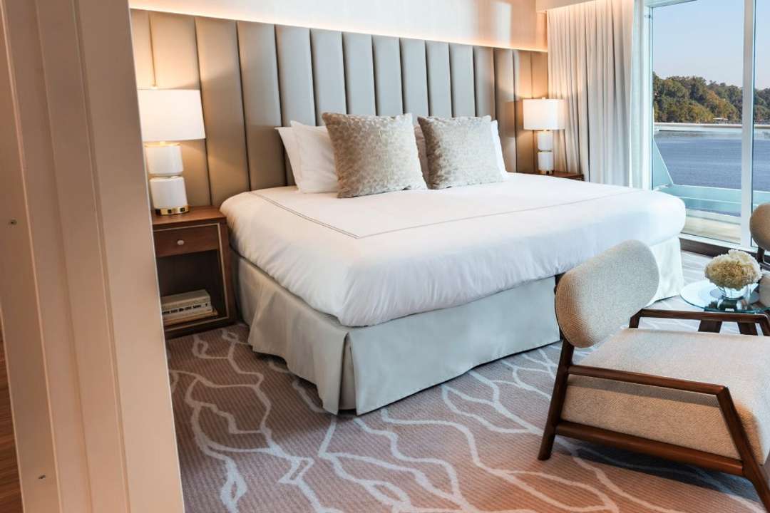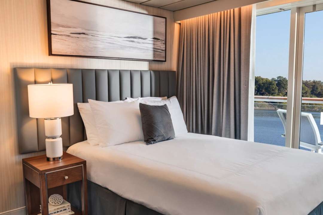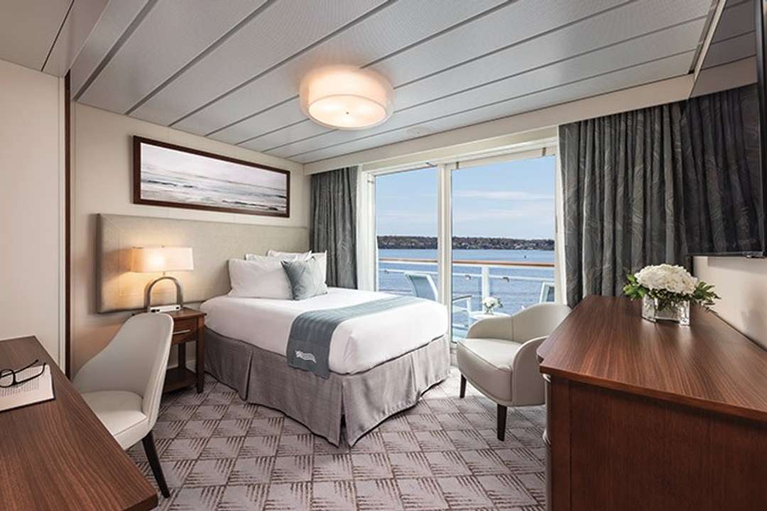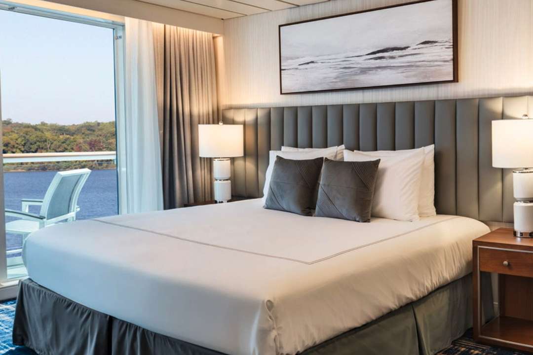 The American Pioneer offers an intimate small-ship cruising experience for just 130 guests. Accommodation includes a range of suites and staterooms, from Grand Suites and Sky Suites to Veranda Suites, Vista Balcony, Premium Balcony, and dedicated Single Balcony cabins. Each stateroom features floor-to-ceiling windows and a private balcony, along with modern comforts such as climate control, premium bedding, USB charging ports, and complimentary WiFi.