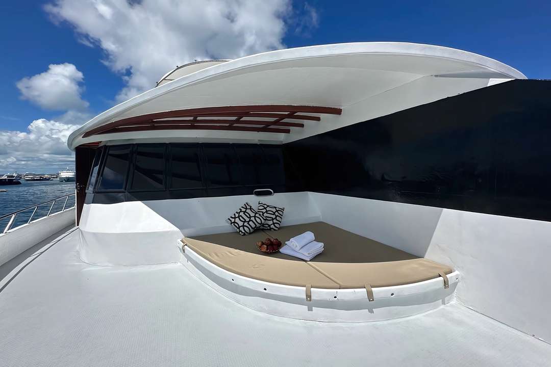 Tivemos onze dias fantásticos. O barco é muito confortável, com muito espaço nos decks superiores para relaxar, conversar, tomar sol... Muito bem preservado e cuidado dos detalhes. Ficamos em uma das suítes no deck superior e é um ótimo e espaçoso camarote com vistas deslumbrantes e um terraço privado.A comida é abundante e muito boa. A tripulação é excelente, amigável e diligente em todos os momentos.O mergulho é inigualável. Os guias deram explicações muito detalhadas de cada local de mergulho. Como havia apenas alguns mergulhadores (treze) fomos divididos em dois grupos, cada um liderado por um guia. Os locais de mergulho são os mais conhecidos em cada atol e não dececionaram.O dhoni a partir do qual o mergulho é feito também é muito confortável e espaçoso. A tripulação está sempre atenta e disposta a ajudá-lo.