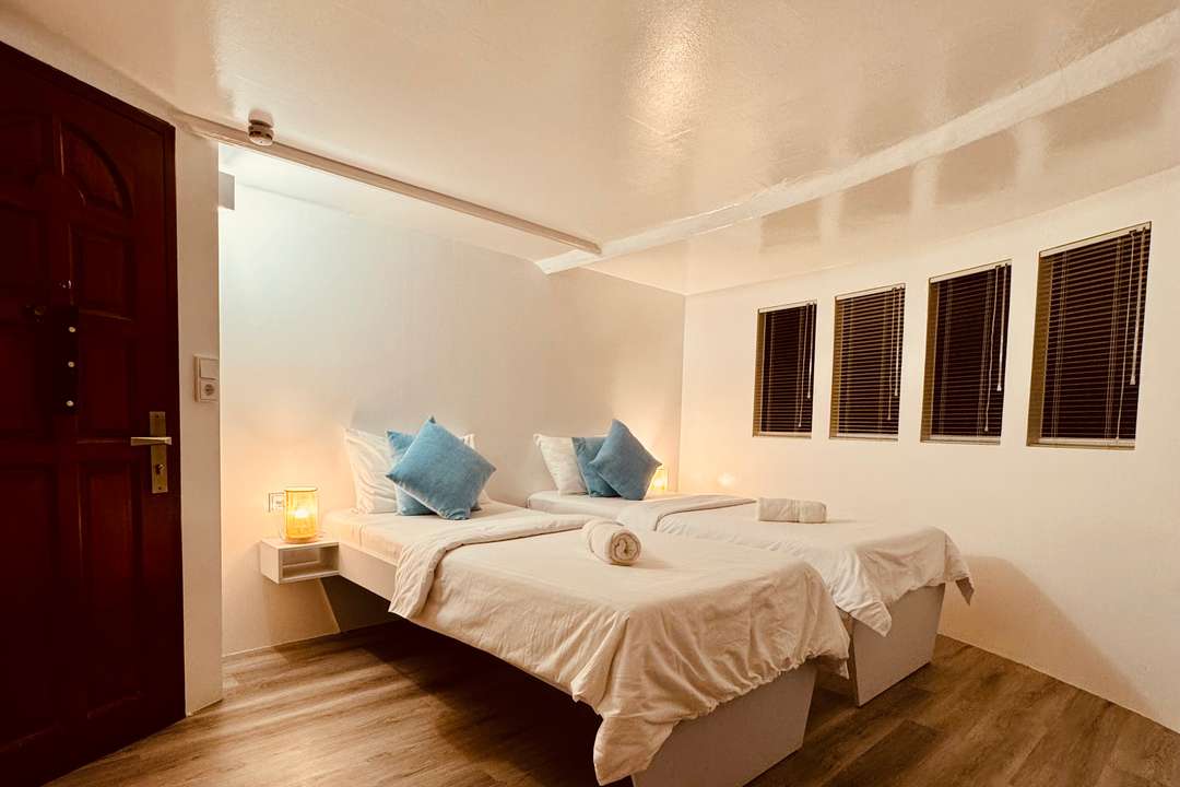 Os quartos e banheiros compartilhados são espaçosos em comparação com outros liveaboards em que estive. A tripulação é muito simpática, educada, prestativa e atenciosa. O barco menor, a partir do qual fazemos o mergulho, também é espaçoso e confortável, com banheiro, telhado coberto e solário. Muito bom valor para o seu dinheiro!