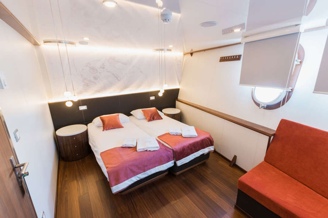 Katarina Line 豪华高级船队由 13 艘船组成,航行于亚得里亚海,专为在迷人的亚得里亚海岸航行提供独家体验而设计。这些奢华的船只配备最新科技和现代化设施,确保旅程舒适且时尚。每艘船可容纳 36 至 38 名乘客。虽然每艘船各具特色,但它们都拥有豪华高级体验的共同特征。客舱尺寸和布局不一,有些提供私人阳台,可欣赏海岸风光。客舱每天提供清洁服务,配有全空调和基础设施,包括吹风机、保险箱、电视和内部电话。
