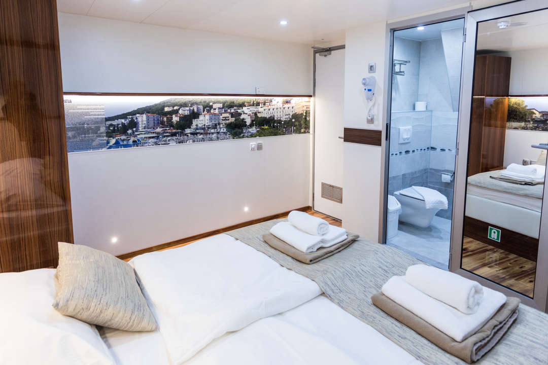 斯特拉·马里斯号游艇上的社交区域包括全空调上层甲板餐厅,该餐厅可容纳所有乘客,同时确保私密性。餐厅可欣赏亚得里亚海岸线的壮丽景色。上层甲板设有舒适的日光浴躺椅,供您在跳岛游之间放松身心。船尾有一个平台,可轻松下水,让您尽情享受游泳的乐趣。