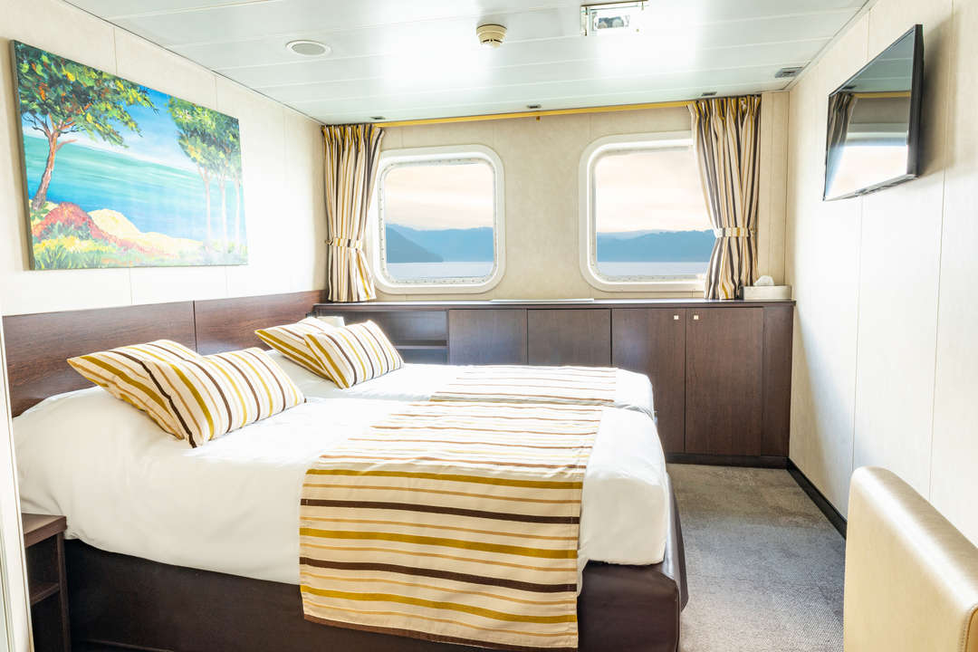 Main Deck Double Cat C Main Deck Twin Cat C Main Deck Twin Cat B Main Deck Twin Cat A Middle Deck Double Cat C Middle Deck PMR Cat C Middle Deck Twin Cat B Middle Deck Twin Cat A Upper Deck Twin Cat C Upper Deck Double Cat C Upper Deck Twin Cat B Upper Deck Twin Cat A 游船规格 建成年份 2009 长度 110 meters 最大载客量 176 客舱数量 88 浴室数量 88 游船航行及安全 雷达 测深仪 全球定位系统 无线电VHF / DSC / SSB 救生艇 救生背心 火警和灭火器 氧气 急救箱 卫星和移动电话 舱底泵预警 搜索灯 引擎室闭路电视 船员受过急救训练